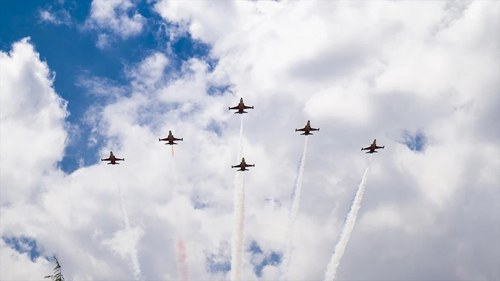 Türk Hava Kuvvetleri akrobasi timi SOLOTÜRK ile Türk Yıldızları, Türkiye'nin ev sahipliğinde düzenlenen, gerçek mühimmatın kullanıldığı 'Uluslararası Anadolu Ankası Tatbikatı'nın ardından gösteri uçuşu yaptı.