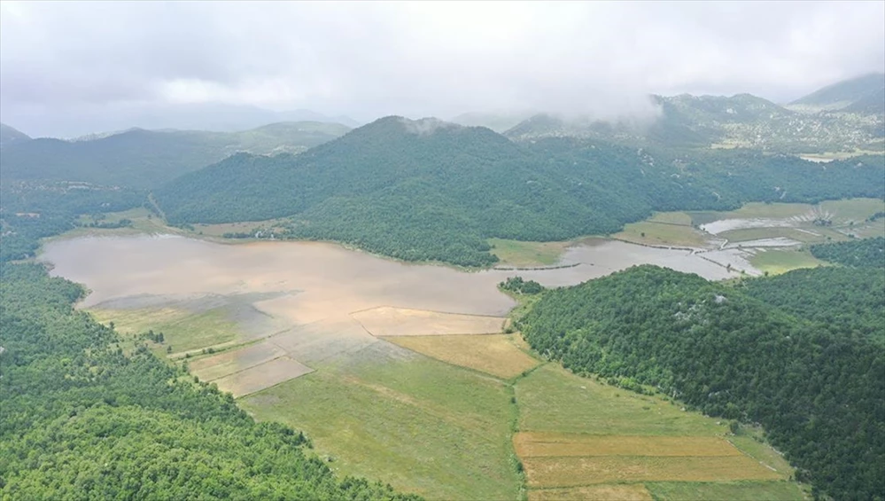 Su altında kalan tarım arazileri dronla görüntülendi.