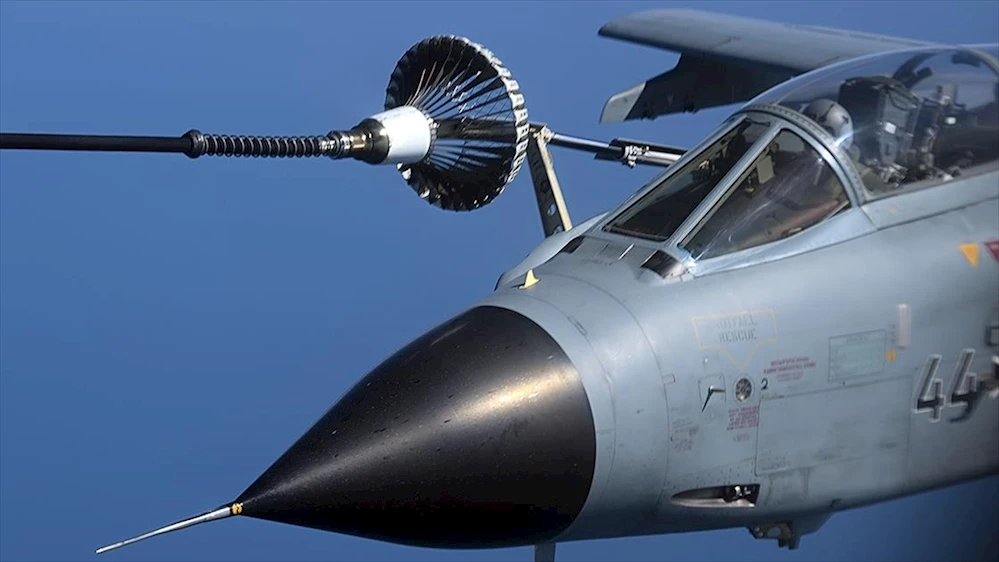AA'nın görüntülediği havada yakıt ikmali sırasında iki Tornado uçağı sırayla tanker uçağa yanaştı.