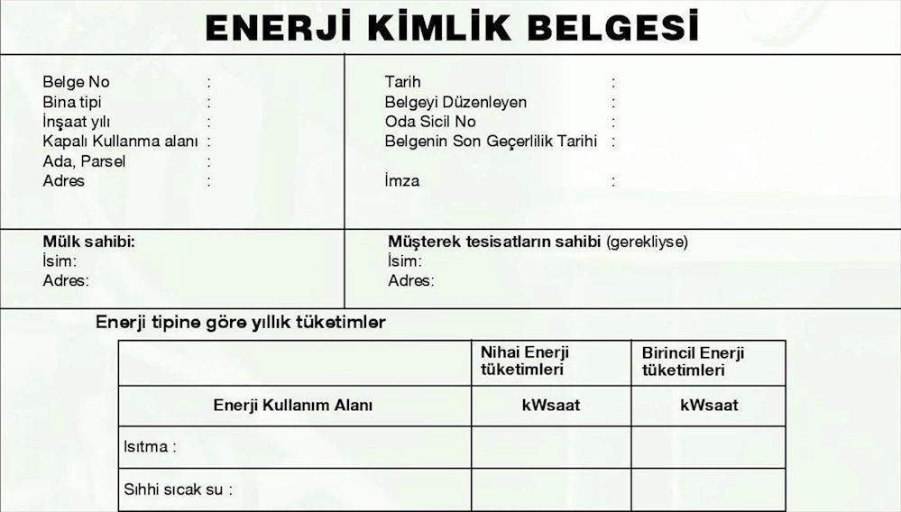 Enerji Kimlik BelgesiYetkili uzmanlar tarafından hazırlanan Enerji Kimlik Belgesi, üç sayfadan oluşuyor.