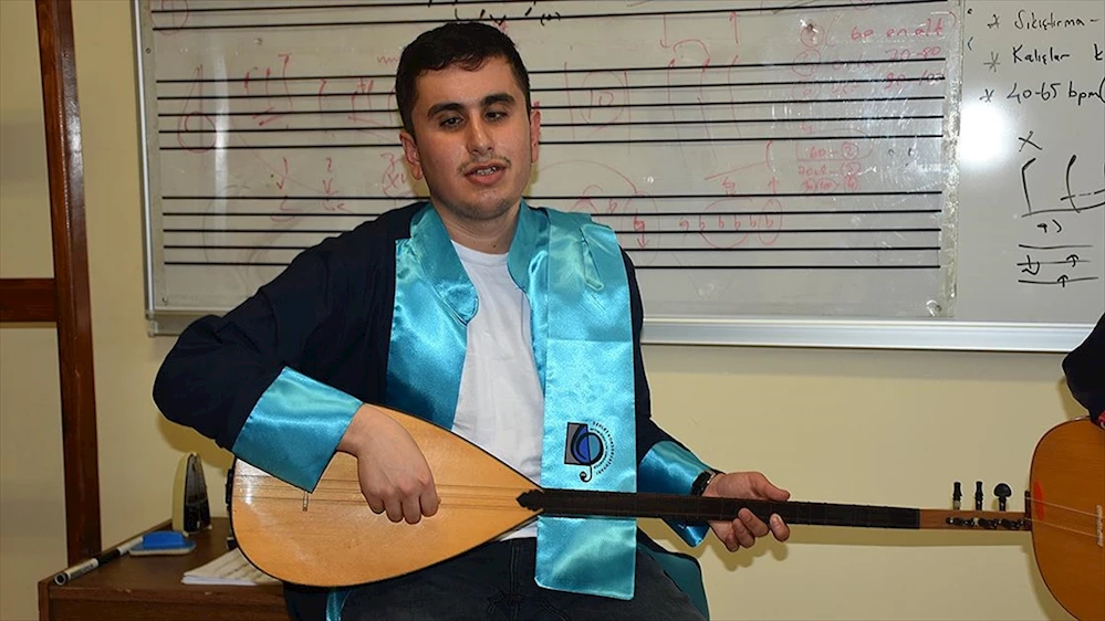 AFYONKARAHİSAR (AA) - Doğuştan görme engelli 25 yaşındaki Ataş, hayatı boyunca müzik yapmayı hedefledi. Ailesinin de yönlendirmesiyle girdiği özel yetenek sınavıyla 2018'de AKÜ Devlet Konservatuvarına kabul edilen Ataş, Türk Halk Müziği Bölüm birincisi olarak mezun oldu.