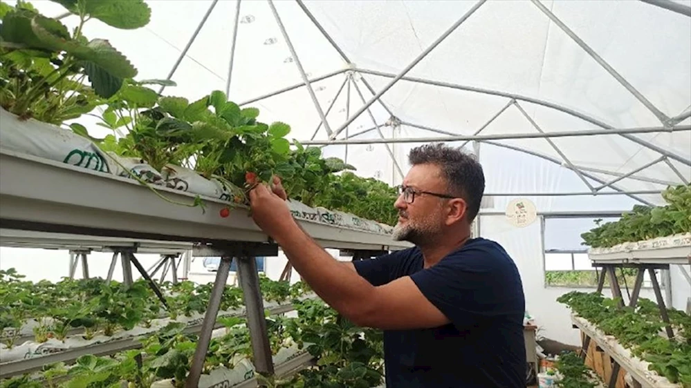 Sakarya, Keşan'da ilk kez kendisinin deneyeceği topraksız çilek üretimi için 250 metrekarelik sera kurdu.