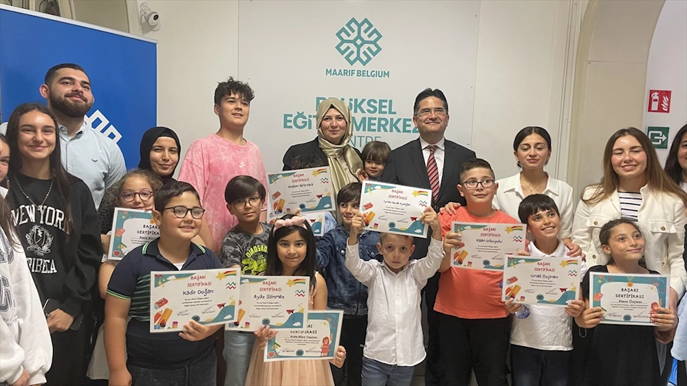 BRÜKSEL (AA) - Brüksel Başkonsolosu Umut Deniz, Vakfın Brüksel'deki ofisinde yapılan 2022-2023 eğitim öğretim yılı kapanış programına katılarak, öğrencilere başarı sertifikalarını verdi.