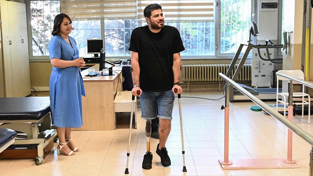 ANKARA (AA) - Kahramanmaraş merkezli depremlerde enkaz altında kalan ve sağ bacağı ampute edilen 35 yaşındaki Mustafa Cezayiroğlu, Hacettepe Üniversitesi Fizik Tedavi ve Rehabilitasyon Fakültesi'nde yapılan protez sayesinde 5 ay sonra yeniden ayağa kalktı.