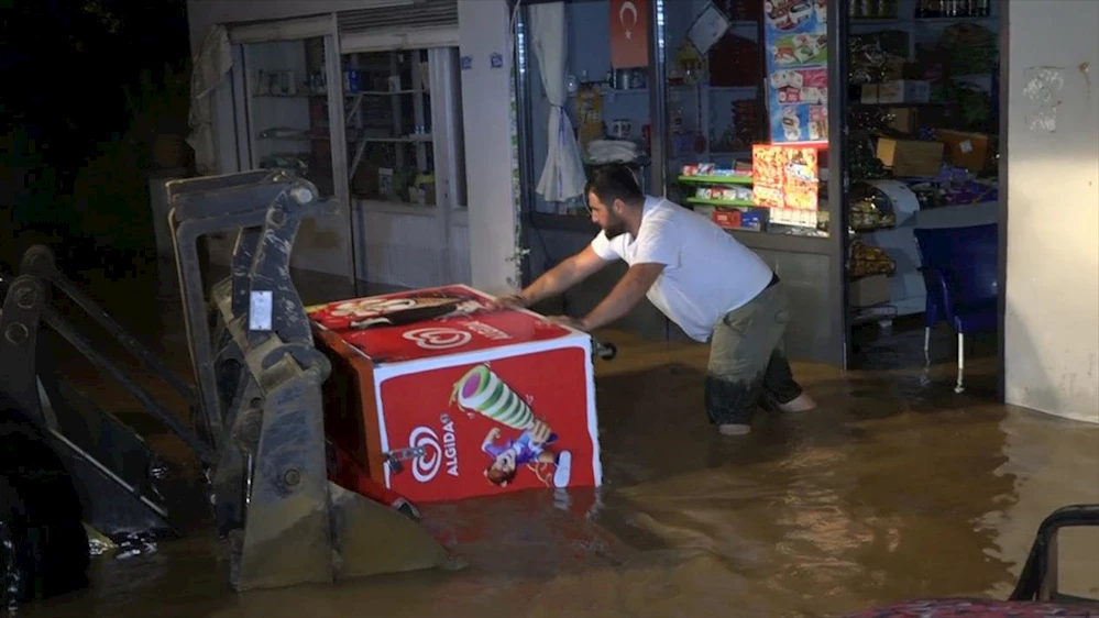 Sakarya'nın Karasu ilçesinde, derenin taşması sonucu bazı ev ve iş yerleri sular altında kaldı.