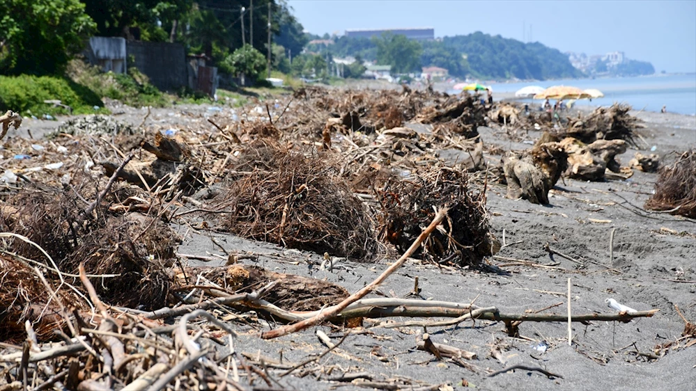 Sağanağın ardından meydana gelen sel ve taşkınlardan etkilenen Düzce'nin kıyı kenti Akçakoca'da sahiller, derelerin taşıdığı ağaç parçalarıyla kaplandı.