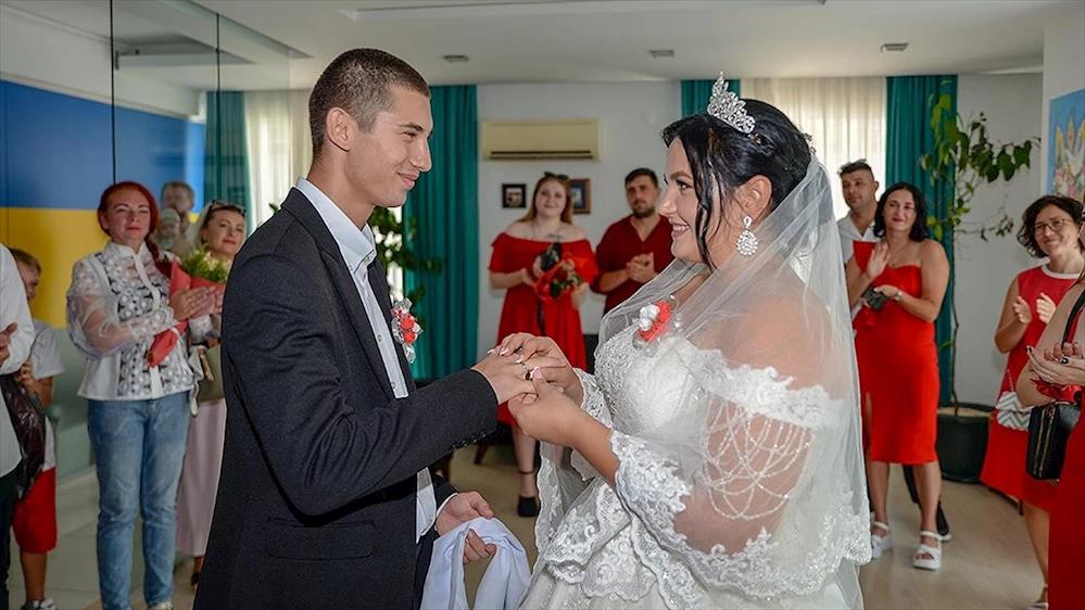 Gençlerin koruyucu aileleri ile 'Savaşsız Çocukluk' projesinin koordinatörü Yana Nahorna, Borysov ve Hliebova'nın nikahı için hazırlık yaptı. Gelinlik giyen Diana Hliebova ile damat Artur Borysov'un, Ukrayna'nın Antalya Konsolosluğundaki törende önce nikahı kıyıldı, ardından Ukrayna geleneklerine göre düğünü yapıldı.