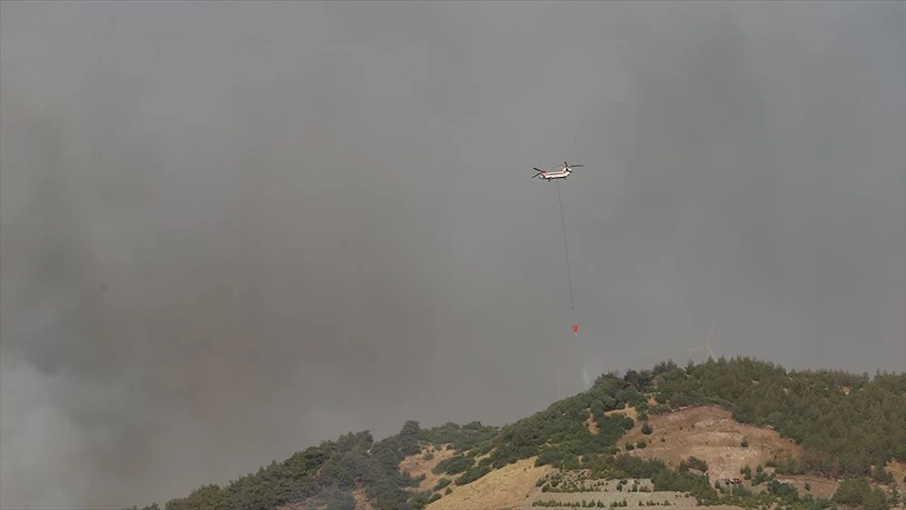 Gaziantep'in Nurdağı ilçesinde çıkan orman yangınına havadan ve karadan müdahale edilerek alevler söndürülmeye çalışıyor.