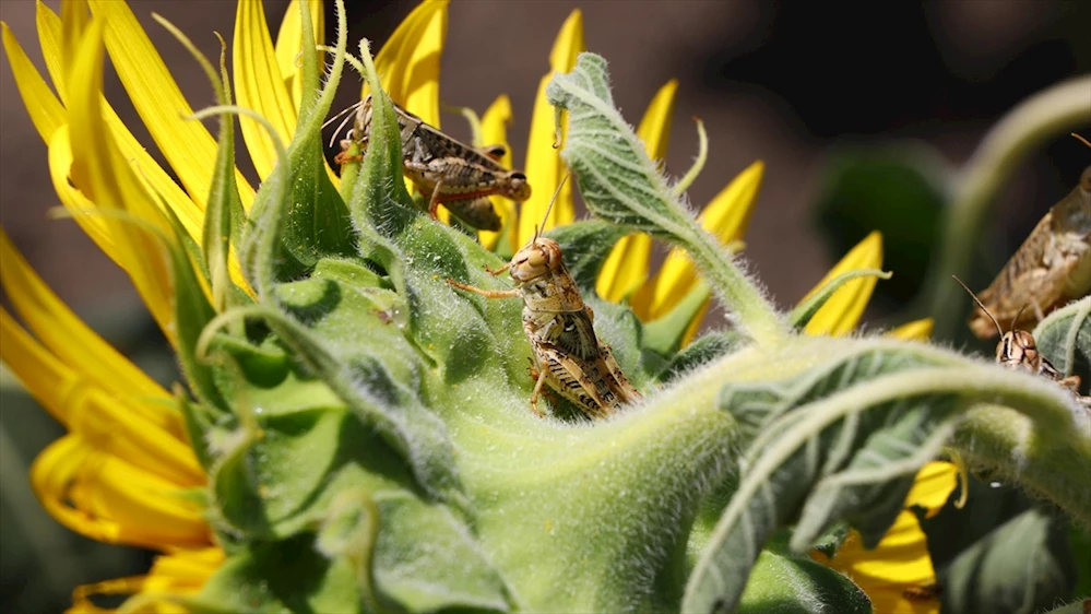 Çekirgelerin mera alanlarından ayçiçeği tarlalarına doğru yöneldiğini gözlemlediklerini aktaran Sağlam, kısa sürede duruma müdahale edildiğini kaydetti.