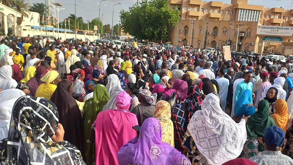 Niamey'de halk, Cumhurbaşkanı Mohamed Bazoum'un, Cumhurbaşkanlığı Muhafız Alayı unsurları tarafından alıkonulmasını ve darbe girişimini kınamak için Ulusal Meclisin önünde toplandı.