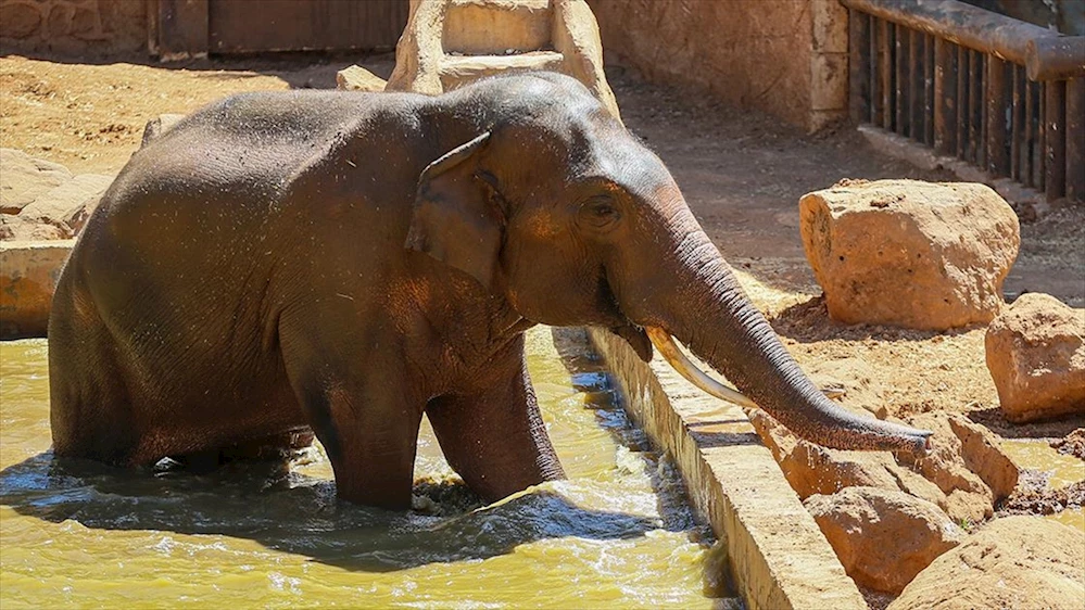 Gaziantep Doğal Yaşam Parkı'nın sakinlerinden ve dünyanın ilk tüp bebek yöntemiyle doğan fili Gabi, sıcak havalarda havuzda oynayarak serinliyor.