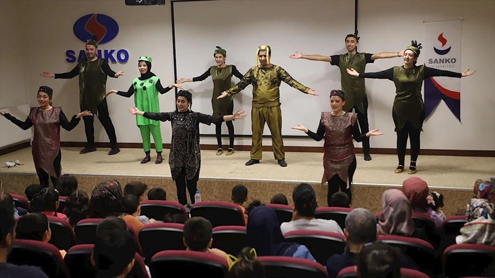 Kahramanmaraş merkezli depremlerden etkilenen Gaziantep'te, afetzede çocuklar için tiyatro etkinliği düzenlendi.