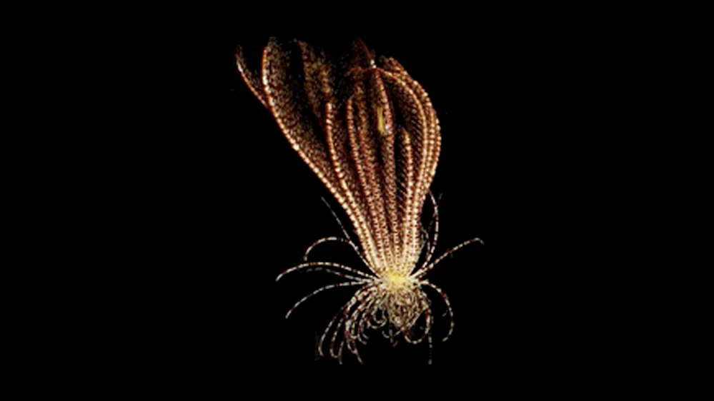 Bir tür deniz zambağı olan ve Antarktika açıklarında bulunan 'Promachocrinus fragarius'un 20'ye yakın kolu olduğu ve renginin de 'mor' ile 'koyu kırmızı' arasında değişkenlik gösterebildiği aktarıldı.