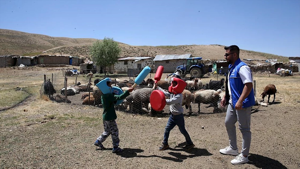 MUŞ (AA) - Gençlik ve Spor İl Müdürlüğü, yaz döneminde aileleriyle yaylaya çıkan çocukları eğlendirmek ve yalnız olmadıklarını hissettirmek amacıyla 'Heybemde Neşe Var Projesi'ni yürütüyor.