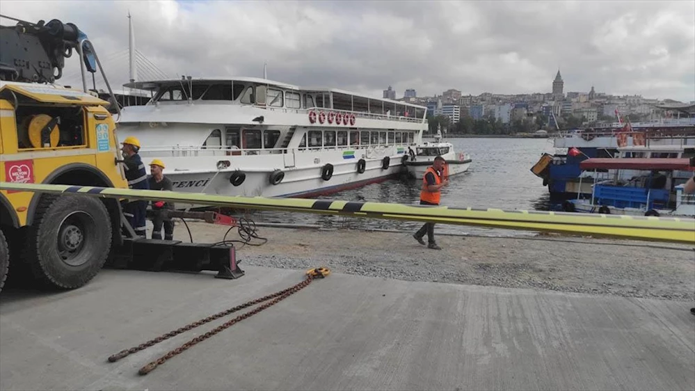 İstanbul Eminönü'nde park halindeki boş İETT otobüsü kayarak denize düştü.