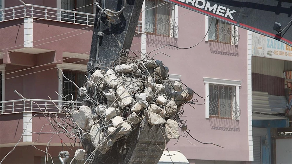 HATAY (AA) - Kent merkezi ve bazı ilçelerde, 6 Şubat'ta meydana gelen afet nedeniyle ağır hasar alan yapılardaki çalışmalar sürüyor.