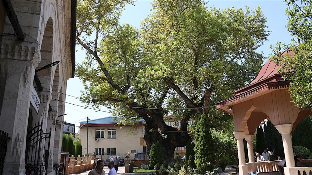 Kuzey Makedonya’nın başkenti Üsküp’teki Osmanlı dönemi eserlerinden Gazi İsa Bey Camisinin avlusunda bulunan asırlık çınar, sıcak yaz aylarında camiyi ziyaret edenlere gölgesinde ferahlık sunmaya devam ediyor.