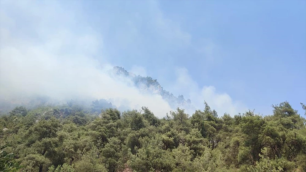 Havadan helikopterle de müdahale edilen yangının kısa sürede kontrol altına alınması için çalışma yürütülüyor.