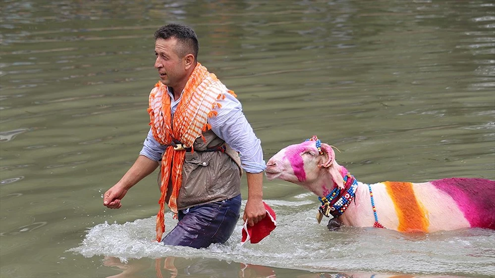UNESCO'nun Somut Olmayan Kültürel Miras Listesi'nde yer alan Denizli'nin Çal ilçesindeki 850 yıllık 'Sudan Koyun Geçirme ve Çoban Bayramı' etkinliğinde, mor ve kırmızı ile çeşitli renklere boyanan koyunlar sudan geçti.