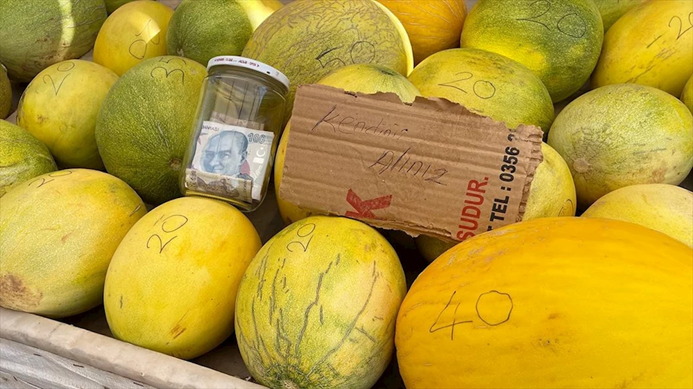 TOKAT (AA) - Tokat-Almus kara yolu Gaziosmanpaşa köyü mevkisinde yol kenarındaki tezgahı gören sürücüler, kavun ya da domates için durduklarında 'kendiniz alın' notuyla karşılaşıyor.