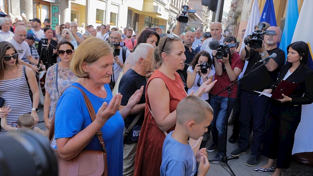 28 Ağustos 1995'te yaşanan katliamda hayatını kaybeden 43 kişiden biri olan Jasmine Hodzic'in akrabaları Zahid ve Hasreta Hodzic de törene katıldı.