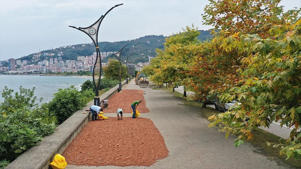 Giresun'da üreticiler, hasat ettikleri fındığı sahil kesimindeki yol kenarlarına sererek daha kısa zamanda kurutma imkanı buluyor.