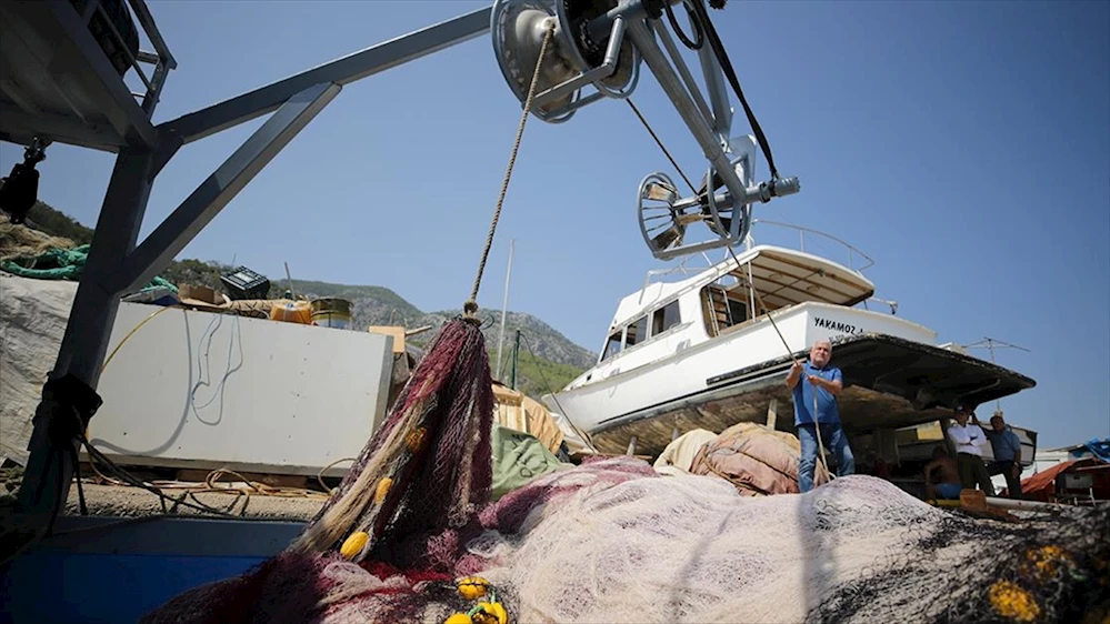 Hazırlık sürecine devam eden Akdenizli balıkçılar, bakım ve onarımdan geçirdikleri ekmek teknelerini suya indirmeye başladı.