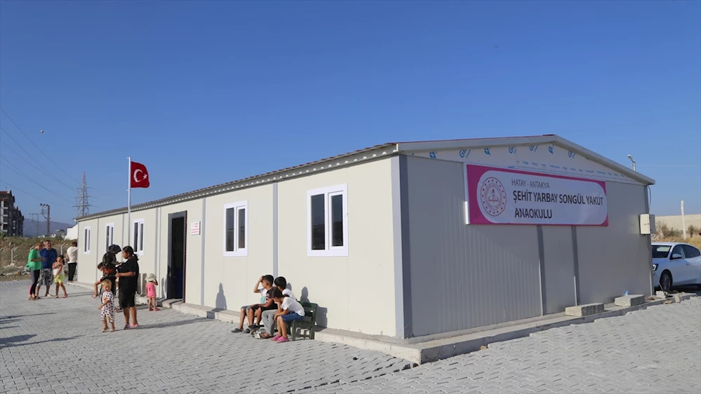HATAY (AA) - Karınca Misali Sosyal Yardımlaşma ve Dayanışma Derneği tarafından, Ekinci Mahallesi Katar-2 Konteyner Kenti içerisine kurulan 4 derslikli prefabrik anaokulunun açılışına, şehit Yakut'un annesi Sabahat Yakut da katıldı.