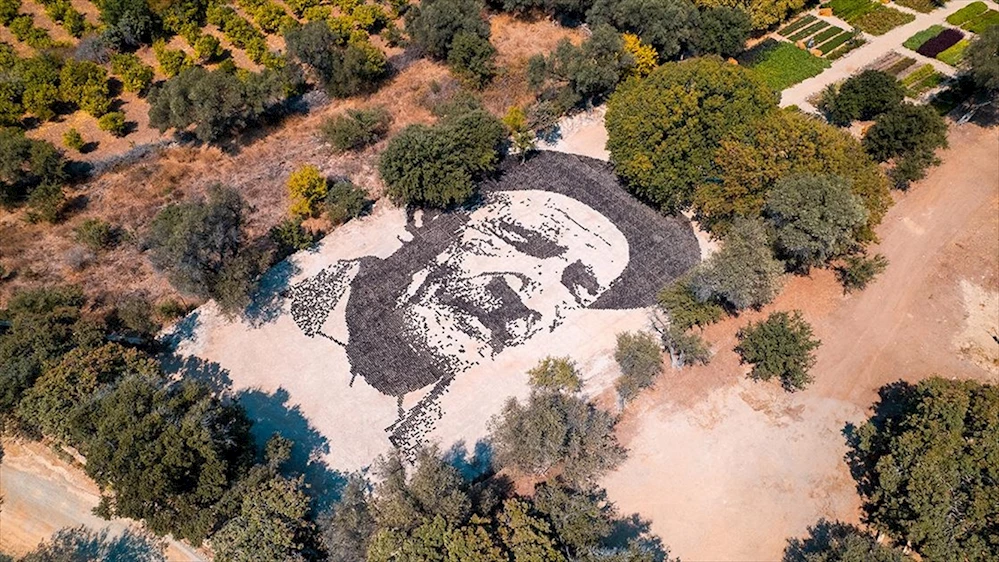 Aşık Veysel'in vefatının 50. yılında Bodrum'da topraktan dev portresi yapıldı