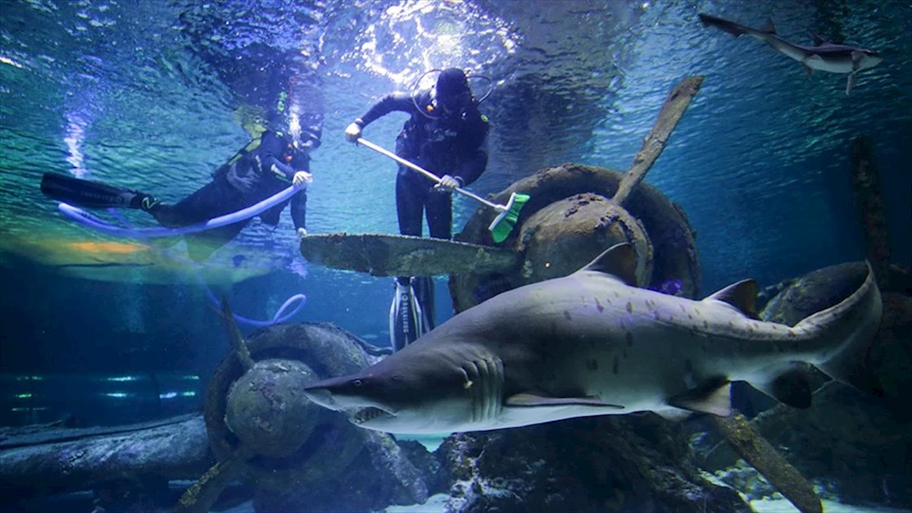 Antalya Akvaryum'da köpek balıkları arasında sonbahar temizliği