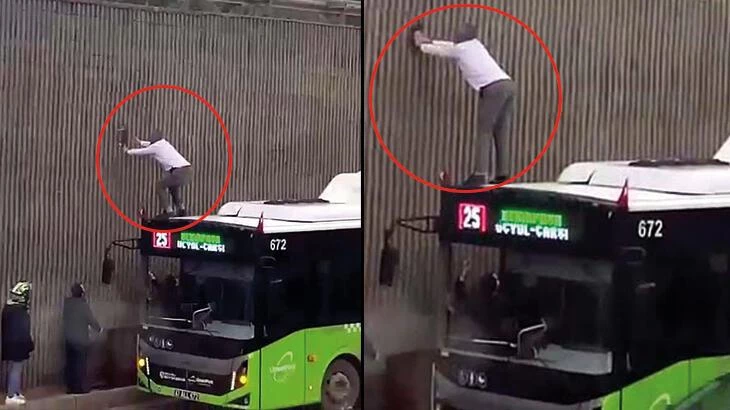 Otobüs şoföründen alkışlanacak hareket! Yavru kedi için aracın üstüne çıktı