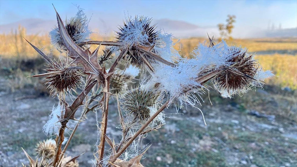 Soğuk hava nedeniyle bitkilerde yoğun kırağı, su birikintilerinde buz tabakası oluştu.