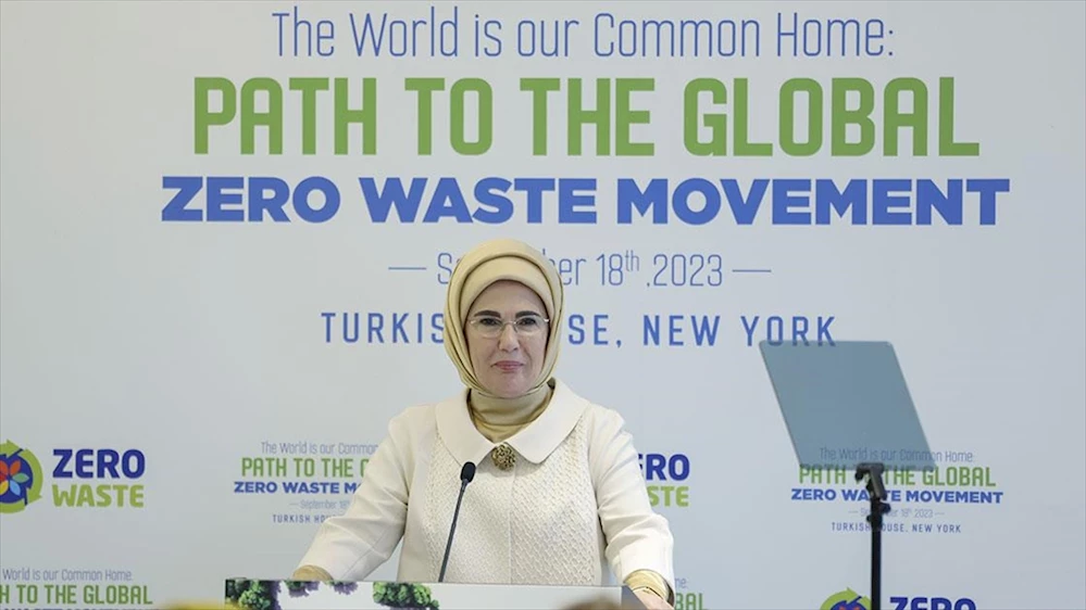 Emine Erdoğan, Türkevi'nde, devlet başkanı eşleri, BM'nin üst düzey yöneticileri, diğer ülke diplomatları ve New York Belediye Başkanı Eric Adams'ın hazır bulunduğu programda, 'Küresel Sıfır Atık Hareketine Doğru' isimli etkinlikte konuştu.
