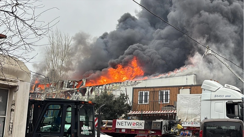 Yoğun dumanın oluştuğu yangına ekiplerin müdahalesi sürüyor.