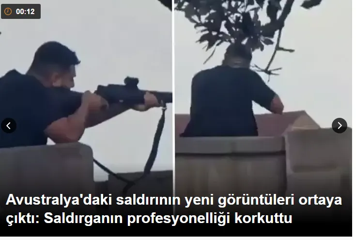 Sky News tarafından paylaşılan son videoda, saldırganlardan birinin uzun namlulu tüfekle kontrollü ve hızlı atışlar yaptığı görülüyor.