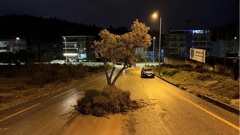 AYDIN (AA) - Söke'de etkisini gösteren sağanak nedeniyle Yenikent Mahallesi'nde dağlık alanda zeytin ağacı kökleriyle yerinden koptu. Ağaç, sel sularının etkisiyle 63. Sokak'a kadar sürüklendi.