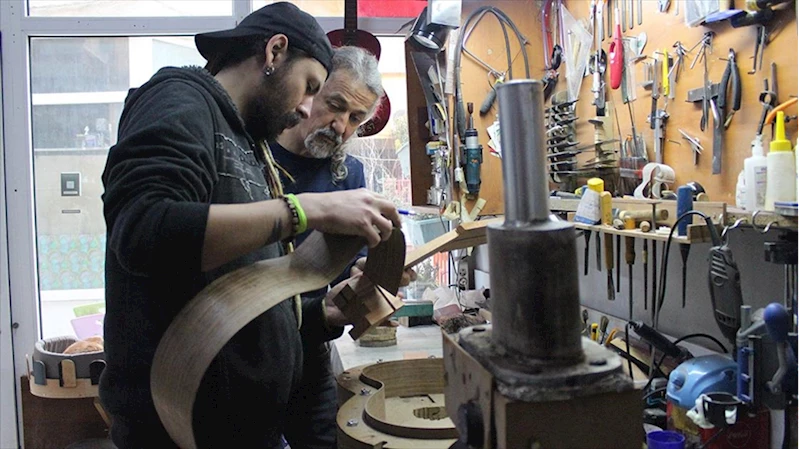 Baba oğul aynı atölyede yaylı çalgı üretip tamir ediyor
