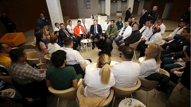 Daha sonra depremlerde yıkılan Antakya'daki özel bir hastanenin enkazından 261. saatte kurtarılan Mustafa Avcı ile Mehmet Ali Şakiroğulları ve aileleriyle görüşen Koca, onlarla da bir süre sohbet etti.