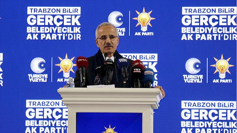 "Bir kaçını paylaşayım sizlerle. Murat Zorluoğlu başkanımızın başlattığı kent içi raylı sistem projesini Ulaştırma Bakanlığı bünyesine Sayın Cumhurbaşkanımızın onayıyla aldık. Detaylı proje çalışmalarına başladık. Hızlı treni Ankara'dan Sivas'a ulaştırdık. Şimdi Kırıkkale'den Çorum'a, oradan Samsun'a ulaştırıyoruz. İnşallah bu sene ihalesini yapacağız. Sonra da Samsun, Sarp'ın ve Trabzon'un da içinde bulunduğu proje çalışmalarını bu sene başlatıyoruz. Artık eyleme geçiyoruz, bundan sonra da bütün Karadeniz ve Trabzon bunu Allah'ın izniyle görecek."