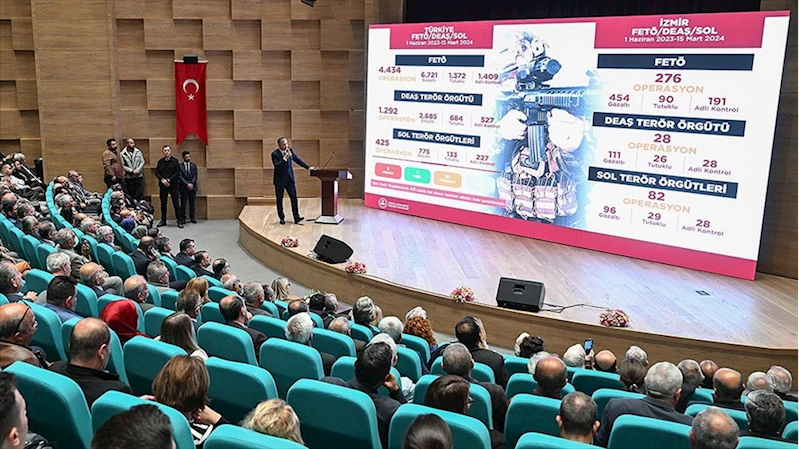 Bu anlamda 417 organize suç çetesi çökertildiğini anlatan Yerlikaya, İzmir'de ise bu sürede 76 operasyon yapıldığını, yakalanan 336 zanlıdan 114'ünün tutuklandığını, 17 organize suç çetesinin çökertildiğini aktardı.