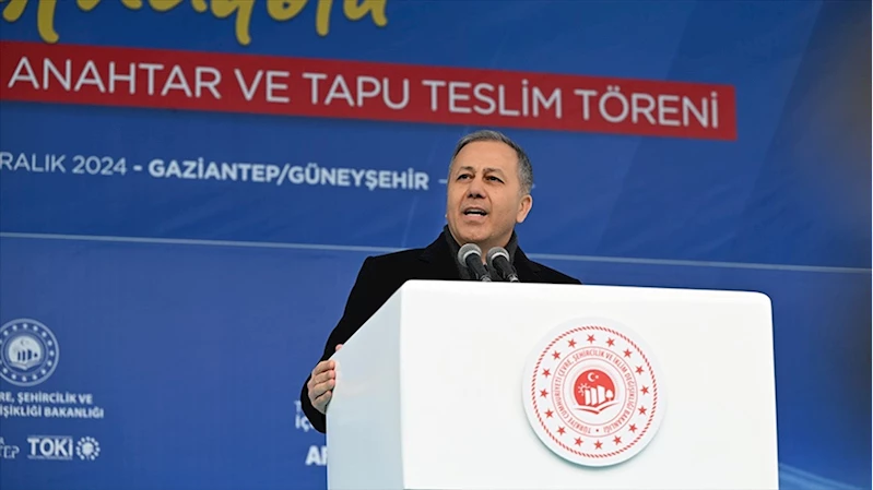 GAZİANTEP (AA) - İçişleri Bakanı Ali Yerlikaya, Güneyşehir'de 5 bin 113 konutun anahtar ve tapu teslim töreninde yaptığı konuşmada, köklü medeniyetlere ev sahipliği yapan gazi şehirde bulunmaktan mutluluk duyduğunu ifade etti.