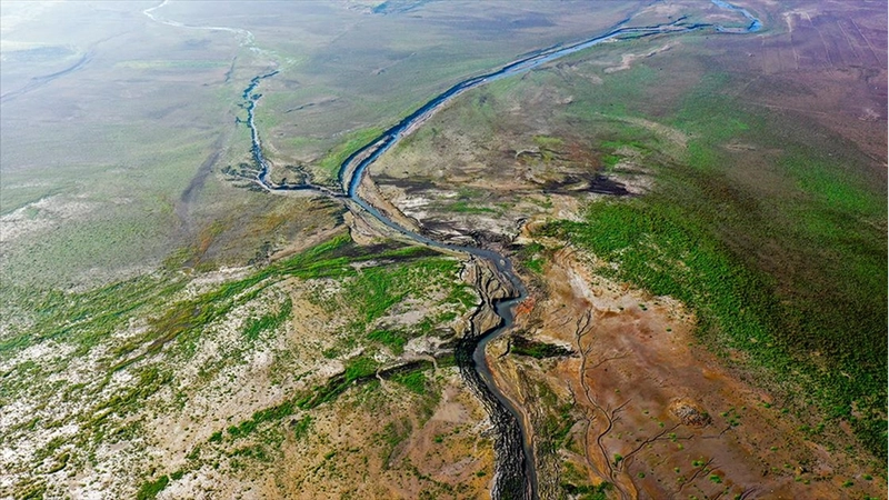 Barajın zemininde yer yer çatlakların oluştuğu, çok sayıda kayığın ise suyun metrelerce gerisinde kaldığı görüldü.