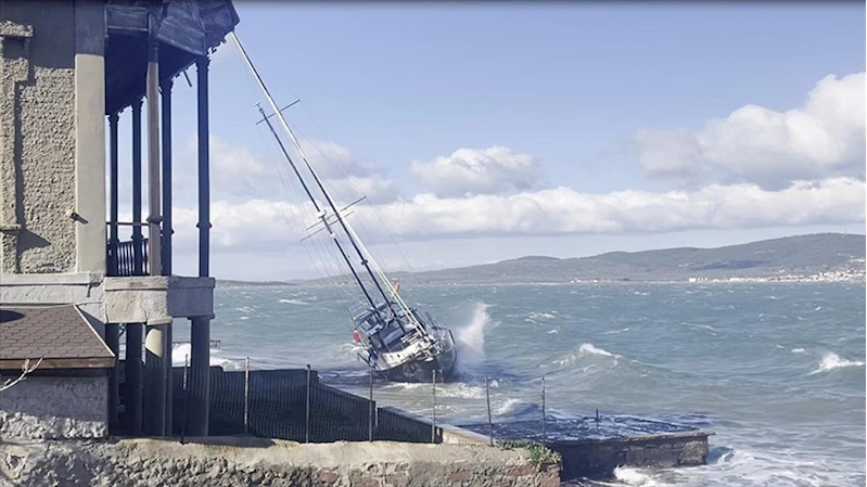 Meteorolojiye göre hızı saatte 65 ila 70, zaman zaman da 80 kilometreye ulaşan fırtına nedeniyle, Palmiyeler mevkisinde demirli bir yelkenli kıyıya sürüklendi.