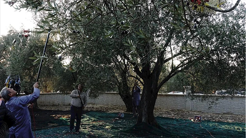 Balıkesir'de yaklaşık 11 asırlık ağaçtan zeytin hasadı