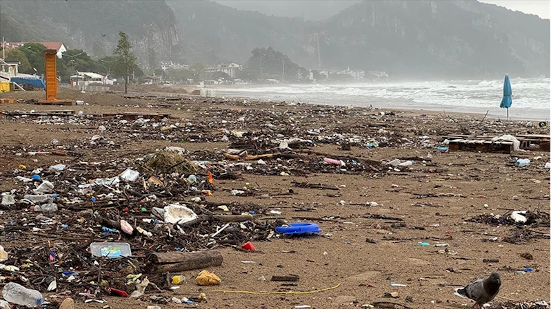 Bartın'da sağanakla denize sürüklenen atıklar İnkumu sahilinde kirlilik oluşturdu