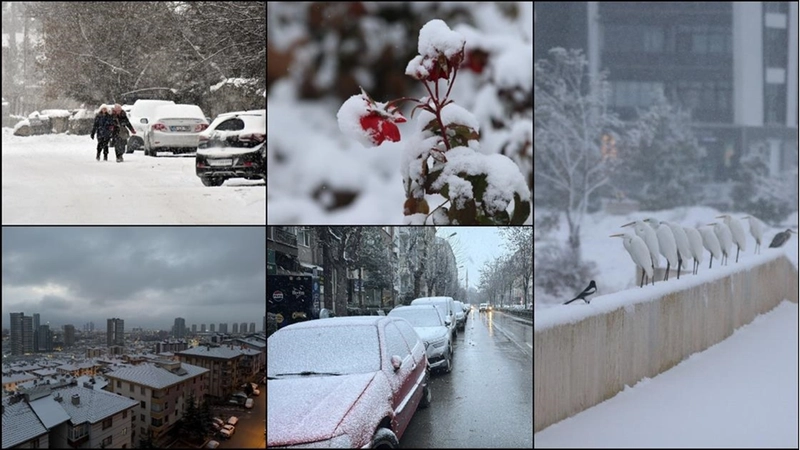 Hava sıcaklığının en düşük sıfırın altında 1 ve en yüksek 1 derece ölçüldüğü kentte binaların çatıları, araçlar ve bitkiler karla örtüldü.