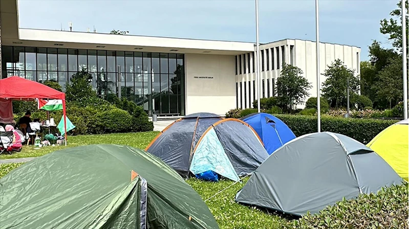 "Eleştirel akademik alan oluşturmak istiyoruz"Eylemi organize eden grubun sözcülerinden Ciclia, AA muhabirine yaptığı açıklamada, üniversitenin Henry-Ford Bau binasının önünde aşırı sağın yükselmesinin, baskıların ve Gazze’deki soykırımın tartışılabileceği eleştirel alan açmak amacıyla "protesto kampı" kurduklarını belirtti.