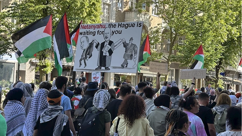 Filistin bayrakları ile üzerinde "Gazze'yi koruyun", "Savaş suçlularına silah sağlamayı durdurun", "Netanyahu, Lahey seni bekliyor", "Filistin'e özgürlük", "Almanya ırkçı ülke, İsrail terör ülkesi" ve "Ateşkes şimdi" yazan dövizler taşıyan göstericiler Uluslararası Adalet Divanının (UAD) İsrail'in Refah'a saldırılarına ilişkin kararının uygulanmasını ve Almanya'nın İsrail'e desteği durdurmasını istedi.