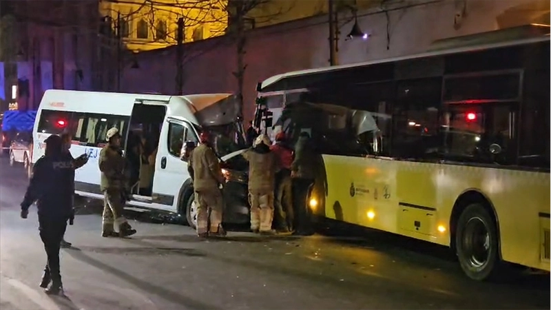İSTANBUL (AA) - Yıldız Mahallesi Çırağan Caddesi'nde seyreden 34 HD 2363 plakalı İETT otobüsü ile 34 LEJ 531 plakalı servis minibüsü çarpıştı.