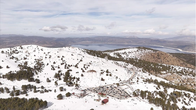 BURDUR (AA) - Kış mevsiminde ziyaretçiler, karla kaplı çam ormanlarının arasında bulunan Salda Gölü'ne hakim 2 bin 79 metre rakımlı Tınaztepe'ye kurulu kayak merkezinde, kayağın ve göl manzarasının tadını çıkarıyor.